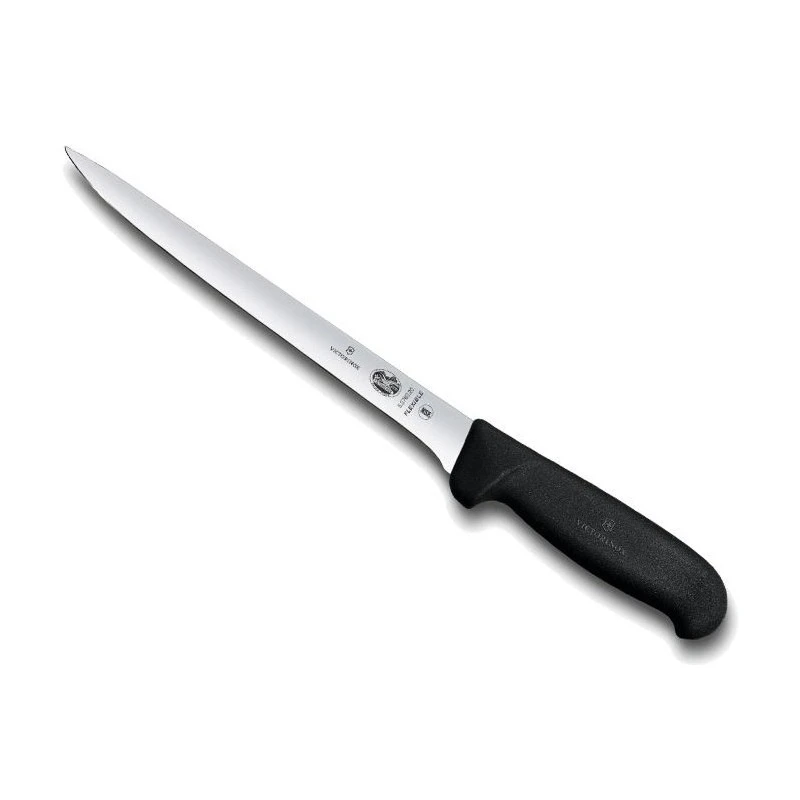 Ce couteau à dénerver Victorinox, référence 5.3763.20, possède une lame flexible usée, de 20cm de longueur, conçue en acier inoxydable pour la résistance à la corrosion/rouille. Décorée de motifs, notamment le logo Victorinox, et personnalisable via gravure (voir bouton ci-dessous), elle est parfaite pour ôter ou retirer les nerfs des morceaux de viandes, afin de les rendre plus tendres. Notez bien le fait qu’elle convient aussi pour la préparation des filets de poissons, filets de soles.
