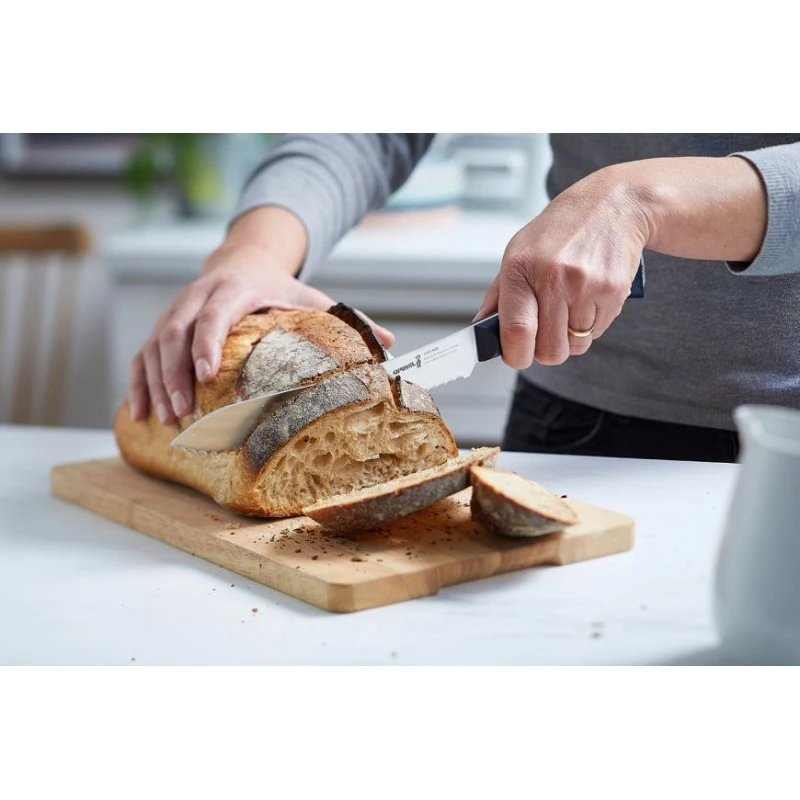 Aucun pain ne lui résiste, c’est l’Opinel Intempora n°216 ! Un couteau à pain de qualité qui se dote d’un manche noir, surmoulé en polyoxyméthylène chargé en fibre de verre. Cela confère au manche une solidité extrême, si bien qu’il résiste parfaitement à l’usure, aux chocs ainsi qu’à l’eau. À noter que la forme galbée assure une prise en main confortable, et ce, même en cas d’utilisation prolongée. Le coloris noir de la poignée apporte son lot de modernité, si bien que le couteau à pain Opinel Intempora n°216 s’intégrera facilement à votre cuisine.