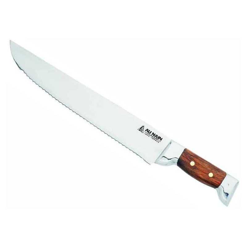 Cuisiner le poisson n’a jamais été aussi simple qu’avec ce couteau Au Nain portant la référence 736. Et pour que les découpes de vos poissons soient les plus faciles que possible, la lame en acier inoxydable, de 36cm de longueur, comporte de nombreuses dents si bien qu’aucun poisson ne lui résistera ! Particulièrement tranchante ainsi que résistante à la corrosion, la lame dentée est aussi très élégante, en partie grâce à la présence du logo Au Nain (fabrication Française).