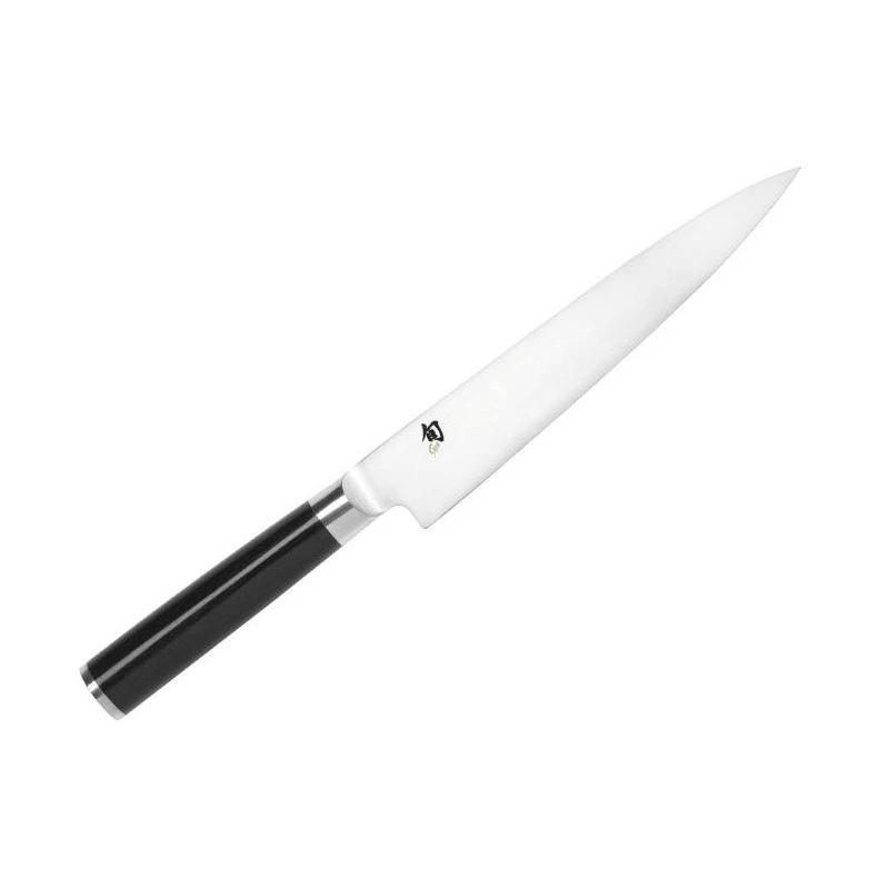 Ce couteau filet de sole Kai, série Shun, référence DM.0761, possède une apparence stylée et moderne. Il faut dire que le manche est noir, avec une conception en lamelles de pacca compressé, sublimé par une jolie mitre sur chacune des extrémités. Élégant, le manche assure aussi une parfaite ergonomie en raison de sa forme conique, afin de pouvoir fileter le poisson de manière toujours très confortable. Un couteau Japonais à offrir aux professionnels ou amateurs appréciant cuisiner le poisson. Le levage des filets n’aura plus aucun secret pour vous !
