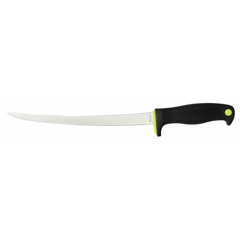 Pour découper et lever les filets de poissons, rien de mieux que ce couteau Kershaw KW1259 FILLET. Sa lame drop point, de 229mm de long, en acier inoxydable 420J2, dispose d’une forme spécialement étudiée pour travailler les poissons avec plus d’efficacité. La lame est fixe, avec demi-garde pour réaliser des découpes du poisson en toute sécurité : possibilité de personnalisation par gravure (voir bouton ajouter une gravure). Le degré de flexion permet de simplifier davantage le travail de filetage. La lame résiste parfaitement à la rouille/corrosion, ce qui est particulièrement important lorsque le travail est réalisé à proximité de l’eau.