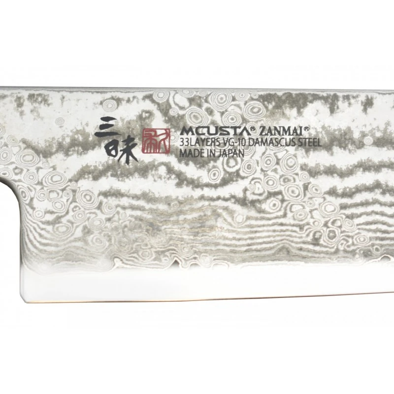 Ce couteau Santoku HZ2-3003DS Splash Hybrid est d’une beauté remarquable, et d’une efficacité redoutable. C’est un couteau de cuisine Japonais conçu par le fabricant Mcusta, une pointure dans le milieu de la coutellerie. Pour émincer les légumes, ciseler les herbes, lever les filets de poissons ou encore découper les viandes, le cuisinier ou la cuisinière pourra sans cesse compter sur une lame de 18cm de longueur. Et pas n’importe laquelle puisqu’elle est conçue en acier VG-10 (noyau) ainsi que de l’acier damas 33 couches autour. C’est ainsi qu’elle est extrêmement tranchante et réussie sur le plan visuel. Ce couteau Santoku Mcusta HZ2-3003DS Splash Hybrid est agréable à utiliser, et ce, même lors des usages les plus intensifs. Son manche de 145mm est fait de pakkawood noir stabilisé comprenant une mitre en alliage nickel-argent. Couteau Santoku Japonais à tranchant symétrique et à profil ogive.