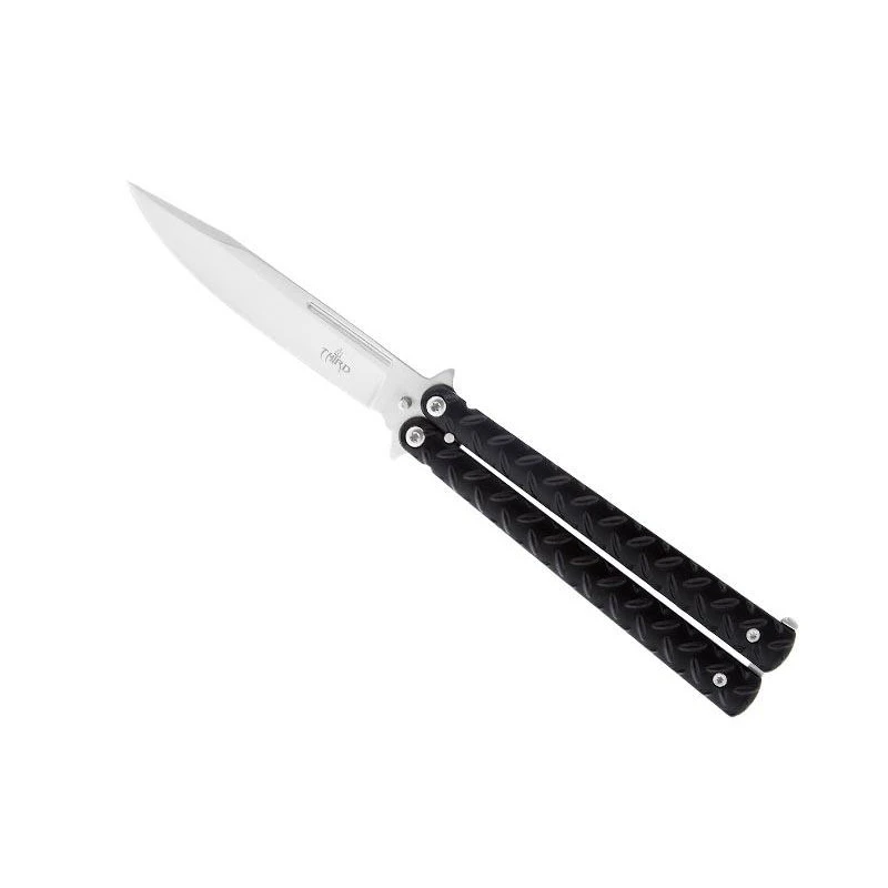 Couteau papillon doté d’une lame en acier inoxydable à bout pointu décorée par le logo Third. Relativement tranchante, cette même lame peut aussi être personnalisée afin de rendre ce couteau balisong Third référence 911512 unique au monde. Au niveau du manche, il est fabriqué en aluminium noir et mesure exactement 13cm de longueur. De ce fait, ce couteau papillon Third 911512 est très facile à transporter au quotidien, muni d’un excellent rapport qualité/prix, il est parfait pour apprendre à manier le balisong.