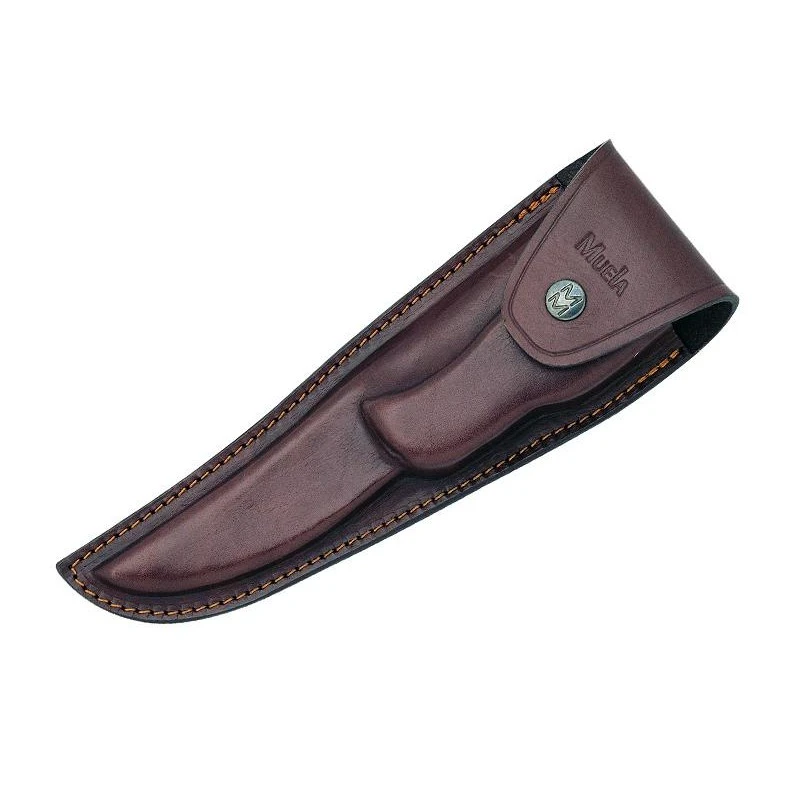 Ce poignard pliant Muela référence 9236 est muni d’une lame en acier inoxydable de longueur 19cm lorsqu’elle est en position ouverte. Car oui, la lame peut être repliée à l’aide d’un levier : elle ne mesure que 11cm de long en position fermée. Ce mécanisme est très pratique pour pouvoir transporter ce couteau de chasse avec facilité au quotidien. Le manche lui est conçu à partir de plaquettes en bois cerf véritable : un matériau noble à la fois résistant, ergonomique et design. Ce poignard pliant Muela 9236 est aussi livré avec son bel étui en cuir marron : il est marqué du texte « Muela » en référence au fabricant Espagnol et se ferme à l’aide d’un bouton pression. Un joli étui idéal pour prendre soin de son poignard pliant préféré : les chasseurs vont l’adorer !